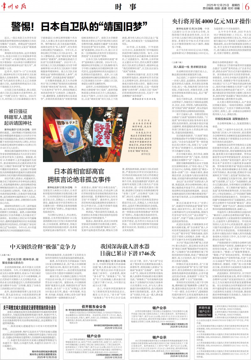 2025年12月25日《常州日报》01版、06版报道《感悟思想伟力 凝聚奋进合力——我市开展学习贯彻党的二十届四中全会精神宣讲活动综述》